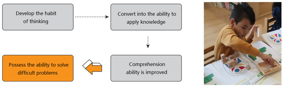 Let children develop the habit of thinking through repeated trial and error. Even if they make mistakes, it doesn't matter; the process of trying again and again will help them develop the habit of thinking, which in turn transforms into the ability to apply knowledge.