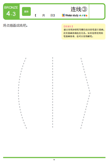 Teacher: What kind of line do you see? (Guide the child to say "dashed line").